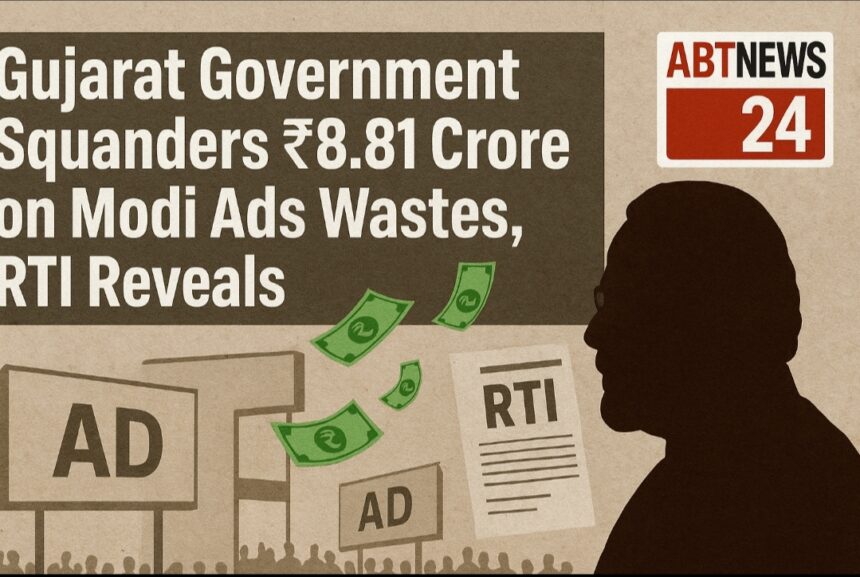 अहमदाबाद Modi Ads Wastes : गुजरात सरकार ने प्रधानमंत्री नरेंद्र मोदी को उनके 23 वर्षों के सार्वजनिक जीवन (गुजरात के मुख्यमंत्री और फिर प्रधानमंत्री के रूप में) की बधाई देने के लिए विज्ञापनों पर ₹8.81 करोड़ खर्च किए हैं। यह चौंकाने वाली जानकारी सूचना का अधिकार (RTI) के तहत सामने आई है। यह खुलासा उस समय हुआ है, जब देश में आम जनता आर्थिक तंगी, बेरोजगारी और बढ़ती महंगाई से जूझ रही है। ऐसे में सवाल उठता है कि क्या सरकार का यह खर्च जनता के टैक्स के पैसों की बर्बादी नहीं है?