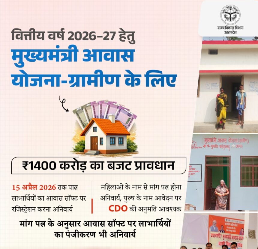जो पात्र परिवार हैं, वे तुरंत अपने गांव के ग्राम विकास अधिकारी (VDO)/ग्राम सचिव, ब्लॉक कार्यालय या पंचायत में संपर्क करें। आवास सॉफ्ट पोर्टल पर नाम दर्ज करा लें। ज्यादा जानकारी के लिए नजदीकी सरकारी दफ्तर में पूछताछ करें। अगर आपके आस-पास कोई पात्र परिवार है जो इसकी जानकारी नहीं रखता, तो उन्हें इस खबर के बारे में बताएं। समय रहते आवेदन करें, ताकि लाभ मिल सके।#मुख्यमंत्रीआवासयोजना #ग्रामीणआवास #UPBudget